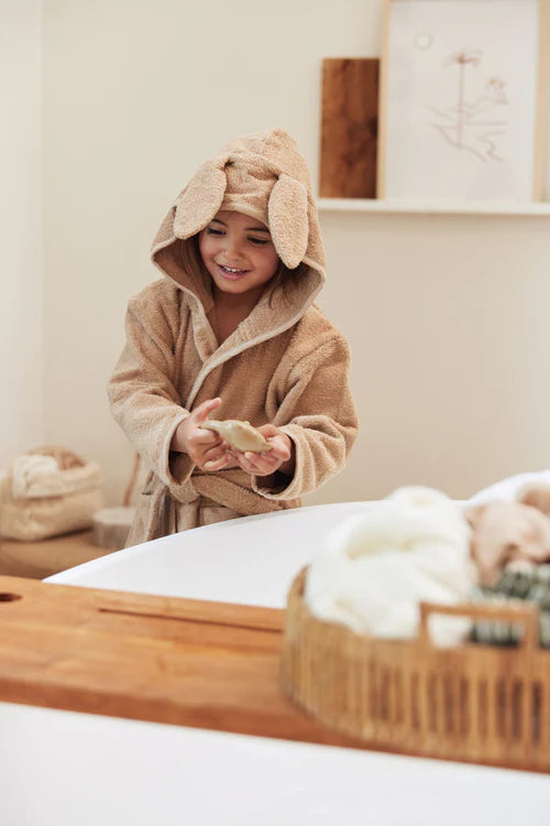Deze zachte badjas van 100% badstof katoen is perfect na het badje, een frisse douche of een dagje zwemmen. De absorberende stof droogt snel en houdt je kleintje heerlijk warm. De capuchon met schattige oortjes droogt het hoofdje en de haartjes mee, en maakt deze badjas tot een favoriet item in elke babyuitzet.