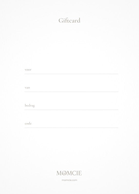 - Te gebruiken op alle MOMCIE-producten (uitgezonderd aankoop van andere giftcards).