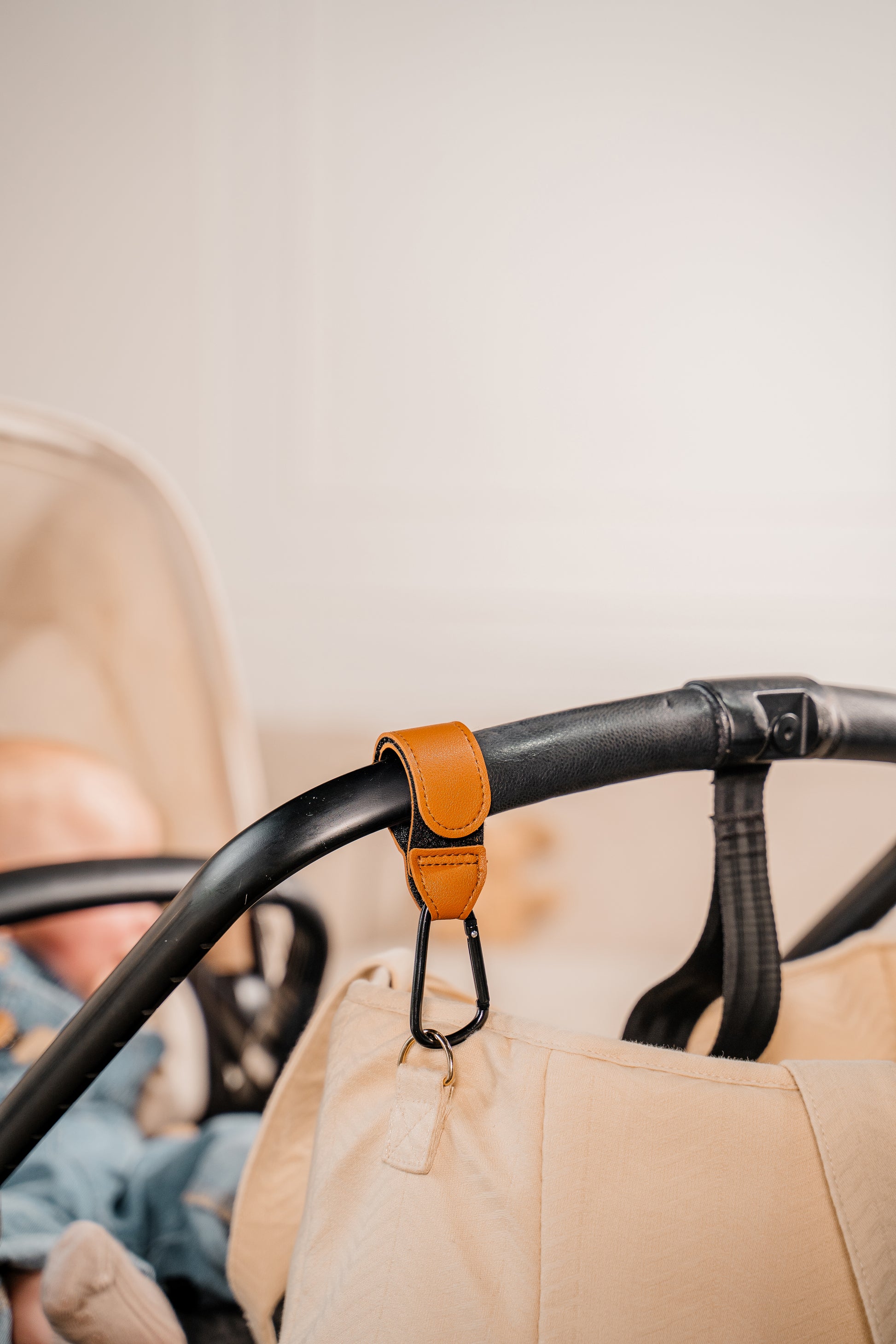 De MOMCIE tassenhaken zijn verkrijgbaar in zwart of bruin, stijlvol en passend bij iedere kinderwagen of tas. Met het stevige klittenband bevestig je de haken eenvoudig aan de duwbeugel. Zo houd je je handen vrij voor belangrijkere dingen: je baby, je koffie of gewoon even een moment voor jezelf.